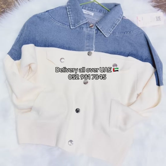 Dagdagan ang dami para sa 1008- Denim and woolen jacket for ladies