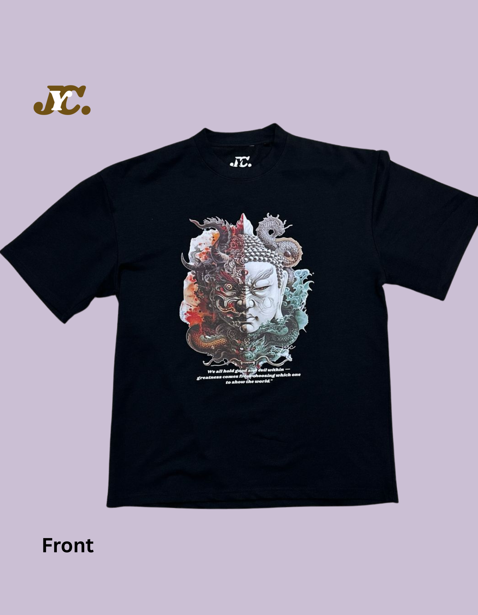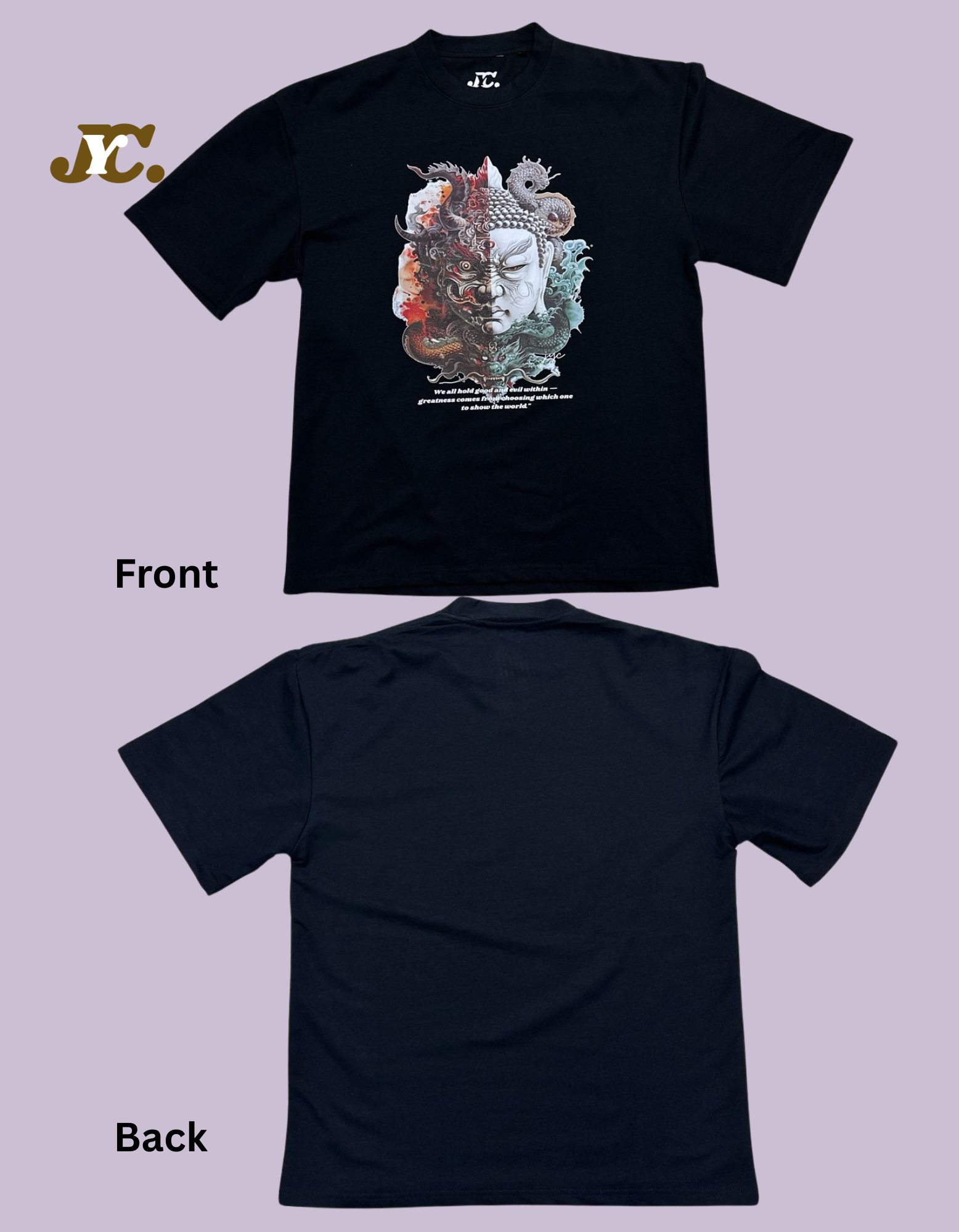 Bawasan ang dami para sa Buddha Good & Evil Print Terry Cotton Tees