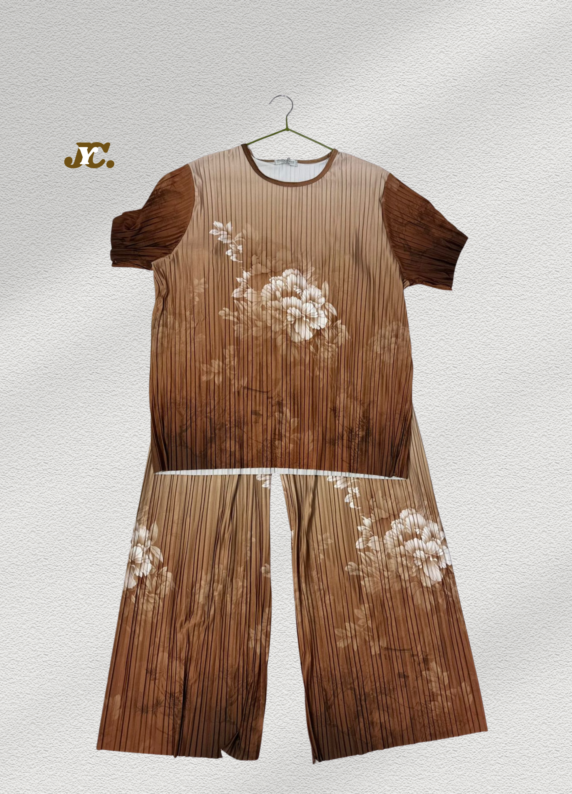 J30-Elegant Pleated Floral Co-Ord Set for Women | Comfortable & Stylish Loungewear