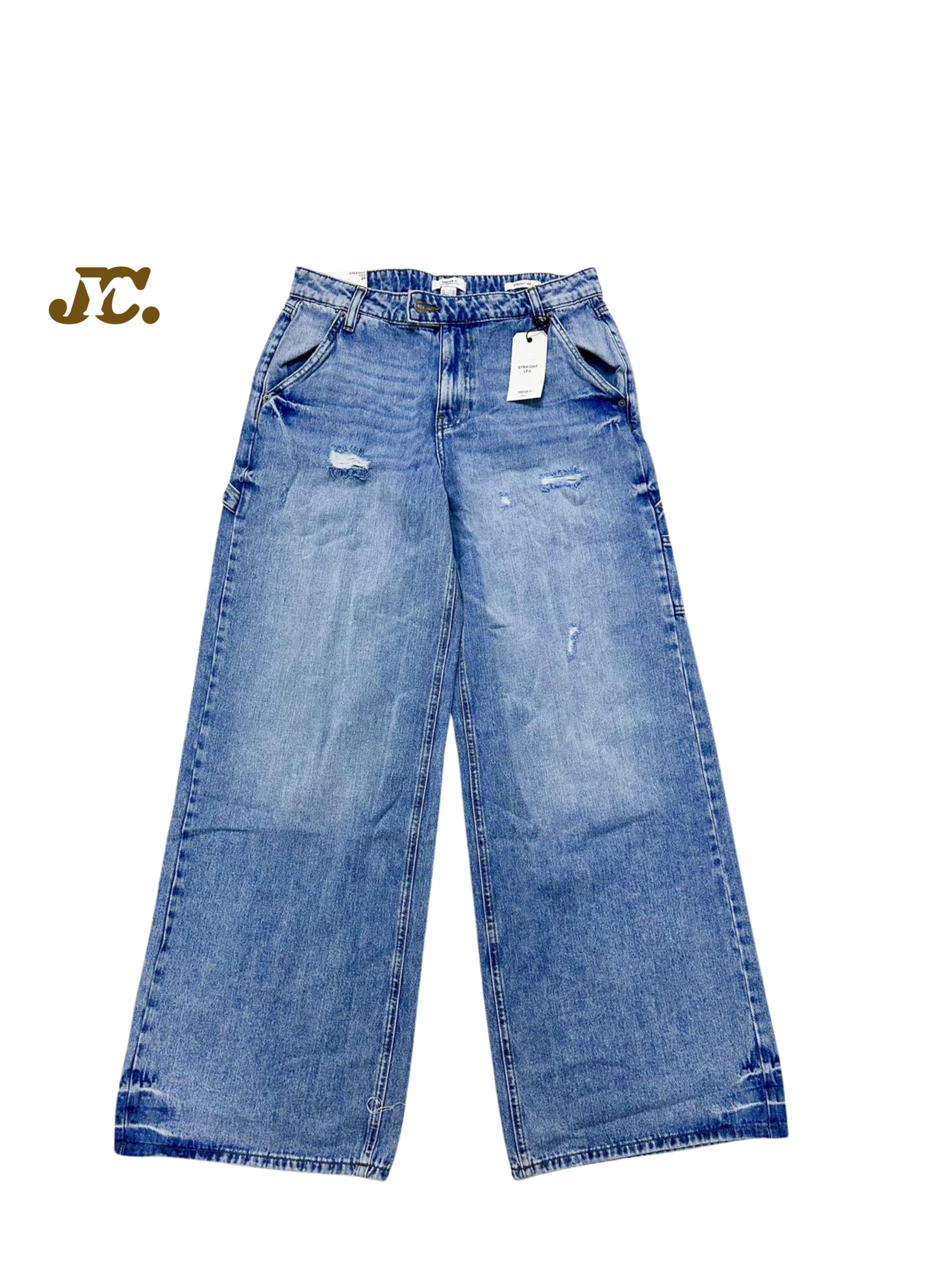 Elegant wide-leg cut with just a hint of distressed flair
