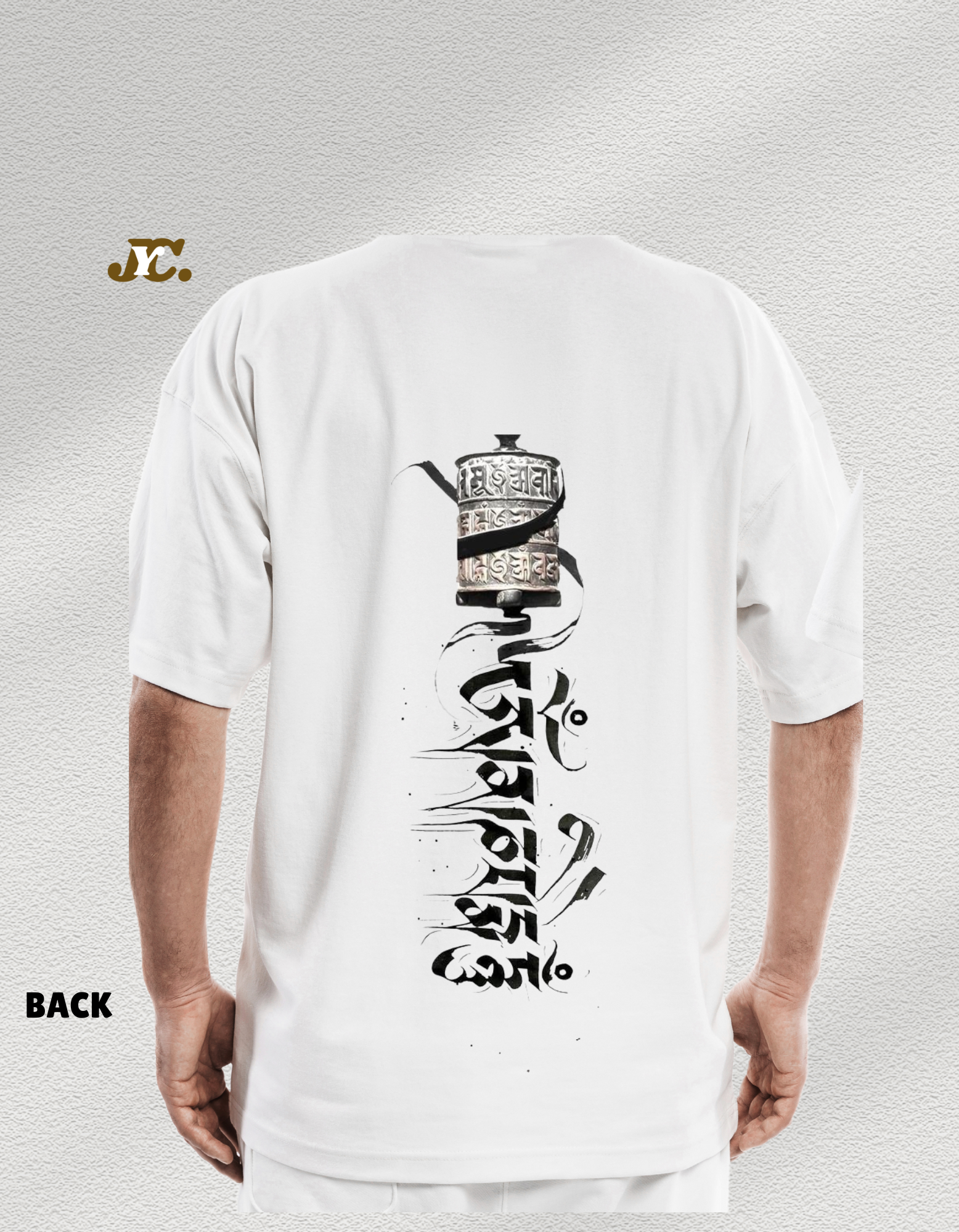 J52-Mani Prayer Wheel Unisex Oversized T-Shirt – 100% Cotton | Tibetan Art | Drop Shoulder Fit